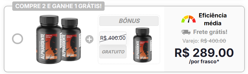 Alphardente Cápsulas é uma fórmula diária pensada para apoiar o desejo sexual, a qualidade das ereções e a vitalidade masculina. A combinação de extratos de plantas e aminoácidos ajuda a sustentar níveis saudáveis de testosterona, energia e confiança na hora H.